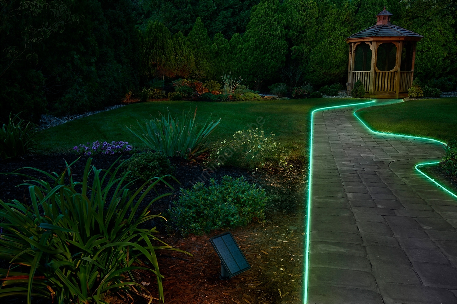 • Ruban LED solaire RGBW dimmable avec télécommande.