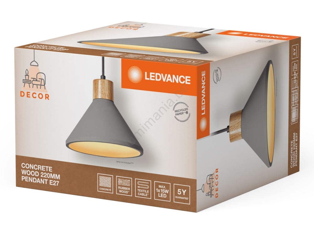 Ledvance - Suspension filaire DECOR CONCRETE 1xE27/15W/230V d. 22 cm béton gris