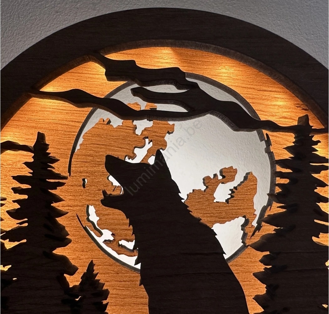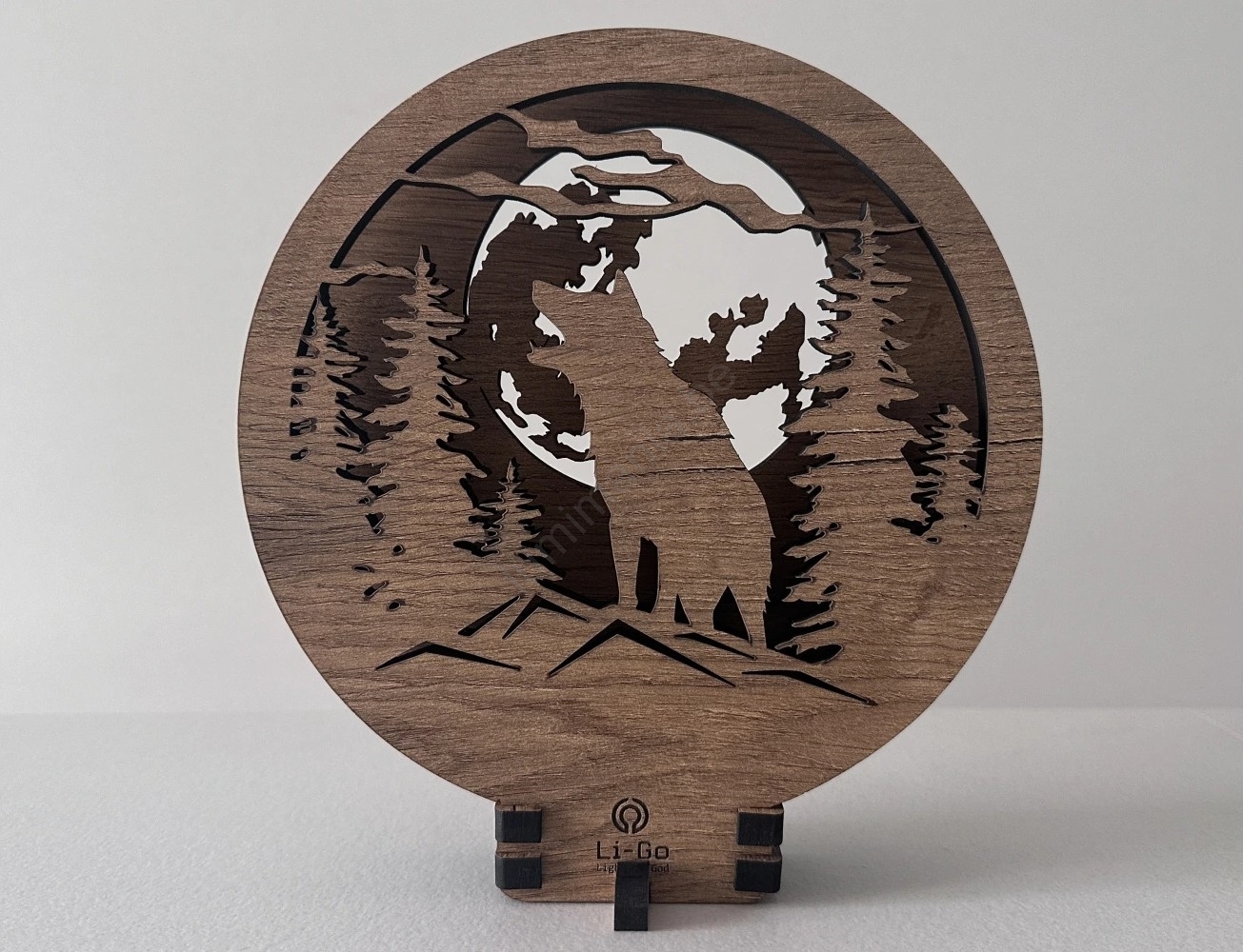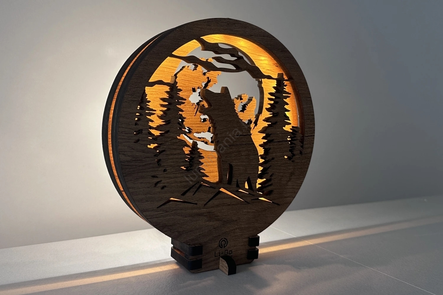 Li-Go 23574/DUB2 - Lampe de table décorative LED dimmable/12W/230V 20x22 cm chêne/Loup et lune