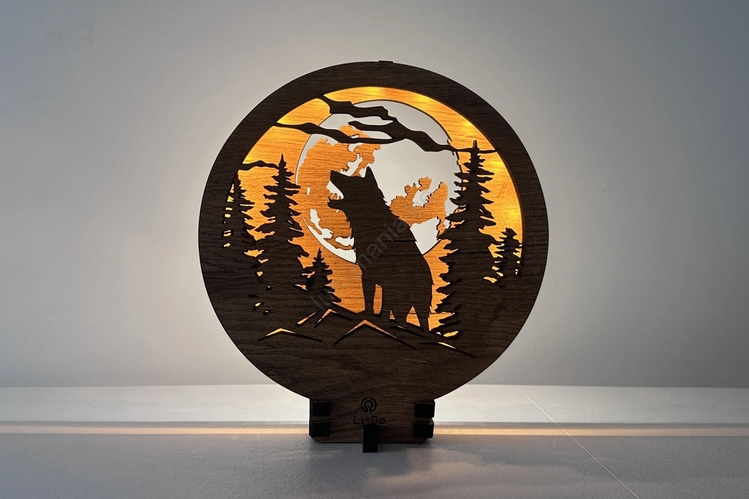 Li-Go 23574/DUB2 - Lampe décorative de table LED à intensité variable LED/12W/230V 20x22 cm chêne/Loup et lune