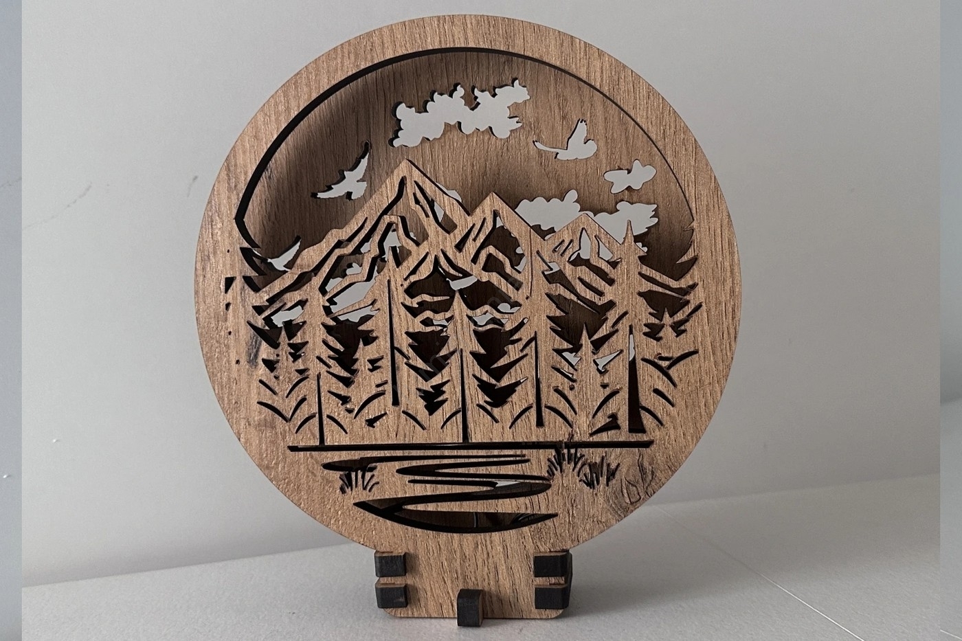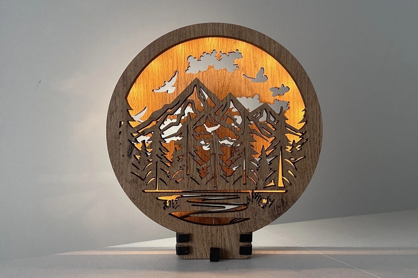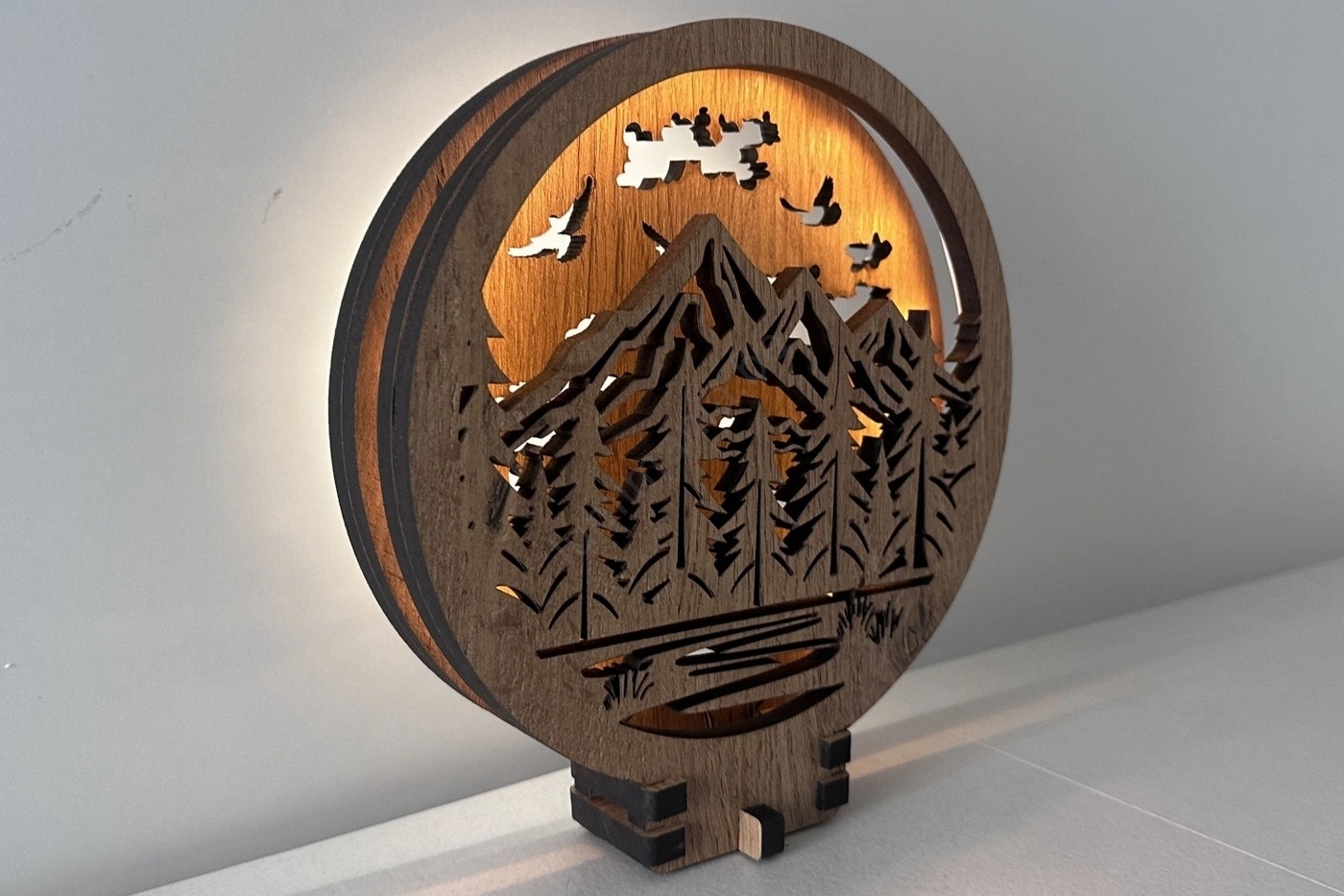 Li-Go 23583/DUB2 - Décoration de table LED dimmable LED/12W/230V 20x22 cm chêne/montagnes et forêt