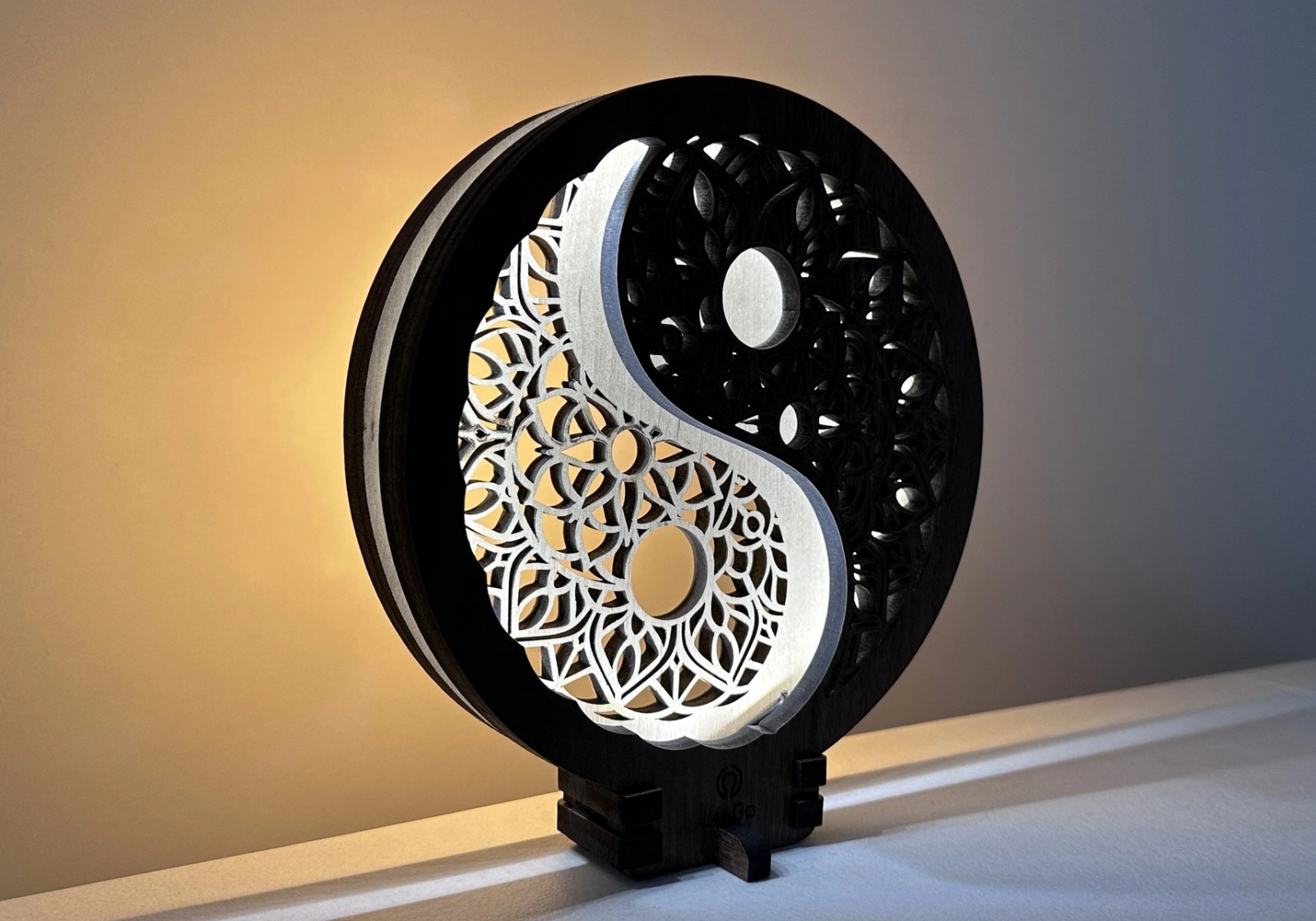 Li-Go 23607/O - Lampe décorative de table à LED dimmable LED/12W/230V 20x22 cm noyer/Yin-Yang