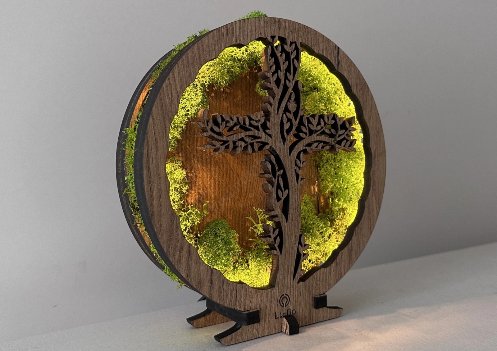 Li-Go 23622/DUB2 - Décoration de table LED dimmable LED/12W/230V 20x22 cm chêne/Croix ornée de mousse