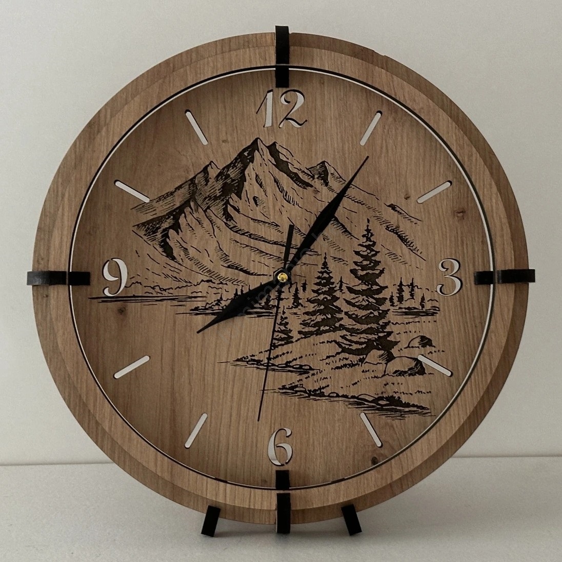 • Li-Go 23676/DUB5 - Horloge murale en bois, 1 pile AA, Ø 32 cm, chêne/montagnes
