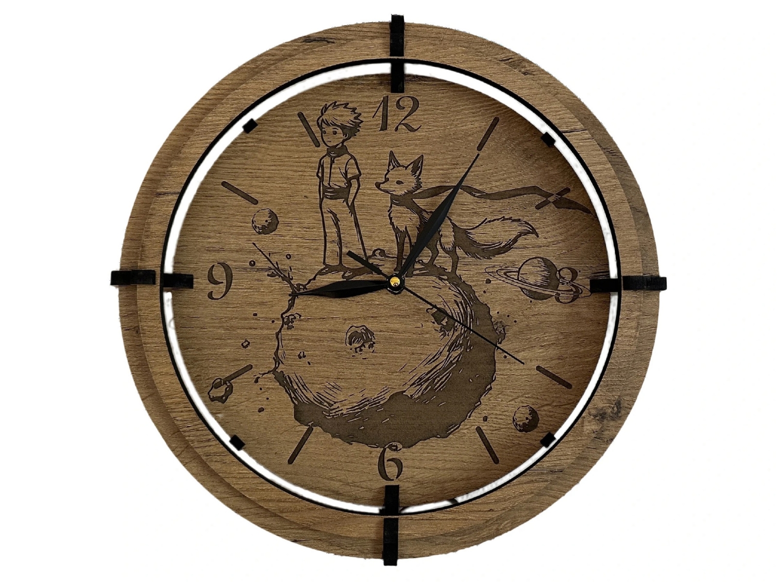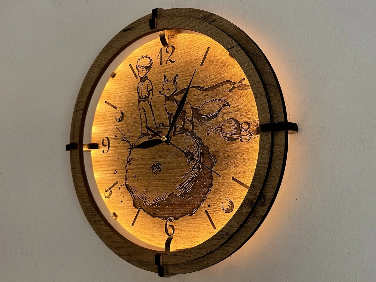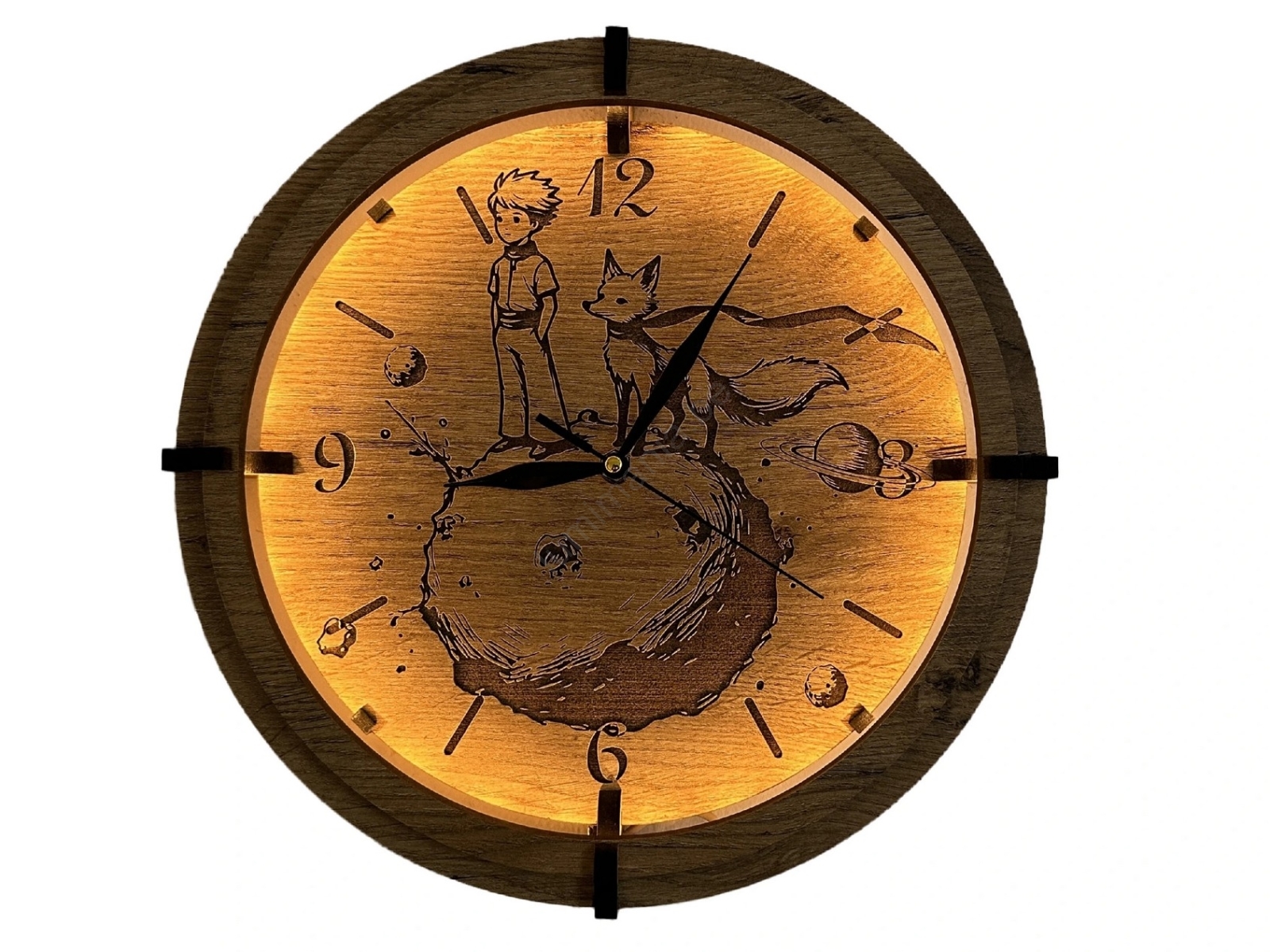 Li-Go 23712/DUB/BAT2 - Horloge LED à intensité réglable avec capteur de mouvement LED/10W/5V 20000 mAh + 1xAA Ø 32 cm chêne/Le Petit Prince