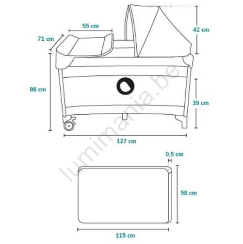 • Inclut un matelas de voyage pliable, utilisable également dans le lit d'appoint (dimensions 120x60 cm) ; le lit d'appoint est également inclus dans l'emballage.