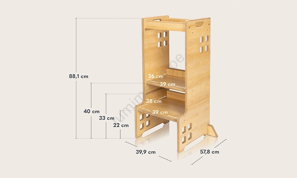 • La tour d'apprentissage est un tabouret multifonction qui offre aux enfants la possibilité de participer à diverses activités créatives au plan de travail de la cuisine ou au bureau.