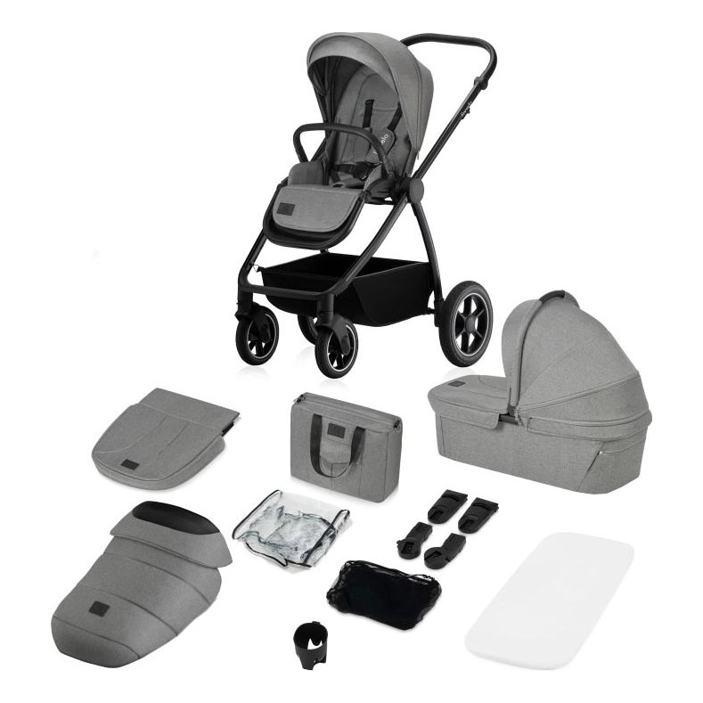 • Set d'accessoires : couvre-jambes, moustiquaire, housse pour nacelle, habillage pluie, sac parent, porte-gobelet, panier verrouillable.