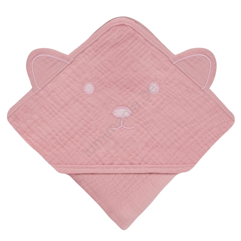 Lionelo - Serviette pour bébé à capuche en mousseline Pink Baby