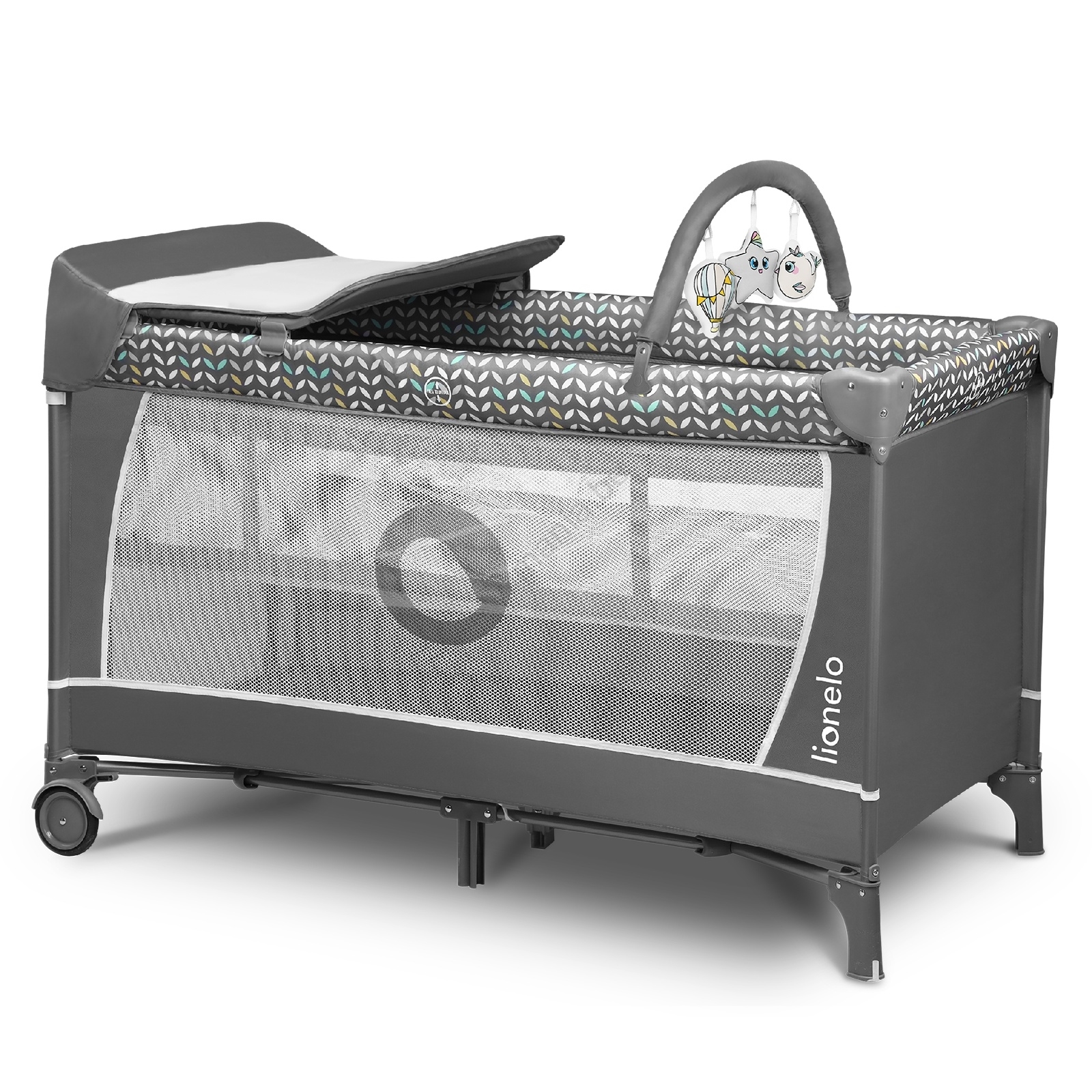 Lionelo - Lit de voyage FLOWER Gris scandinave