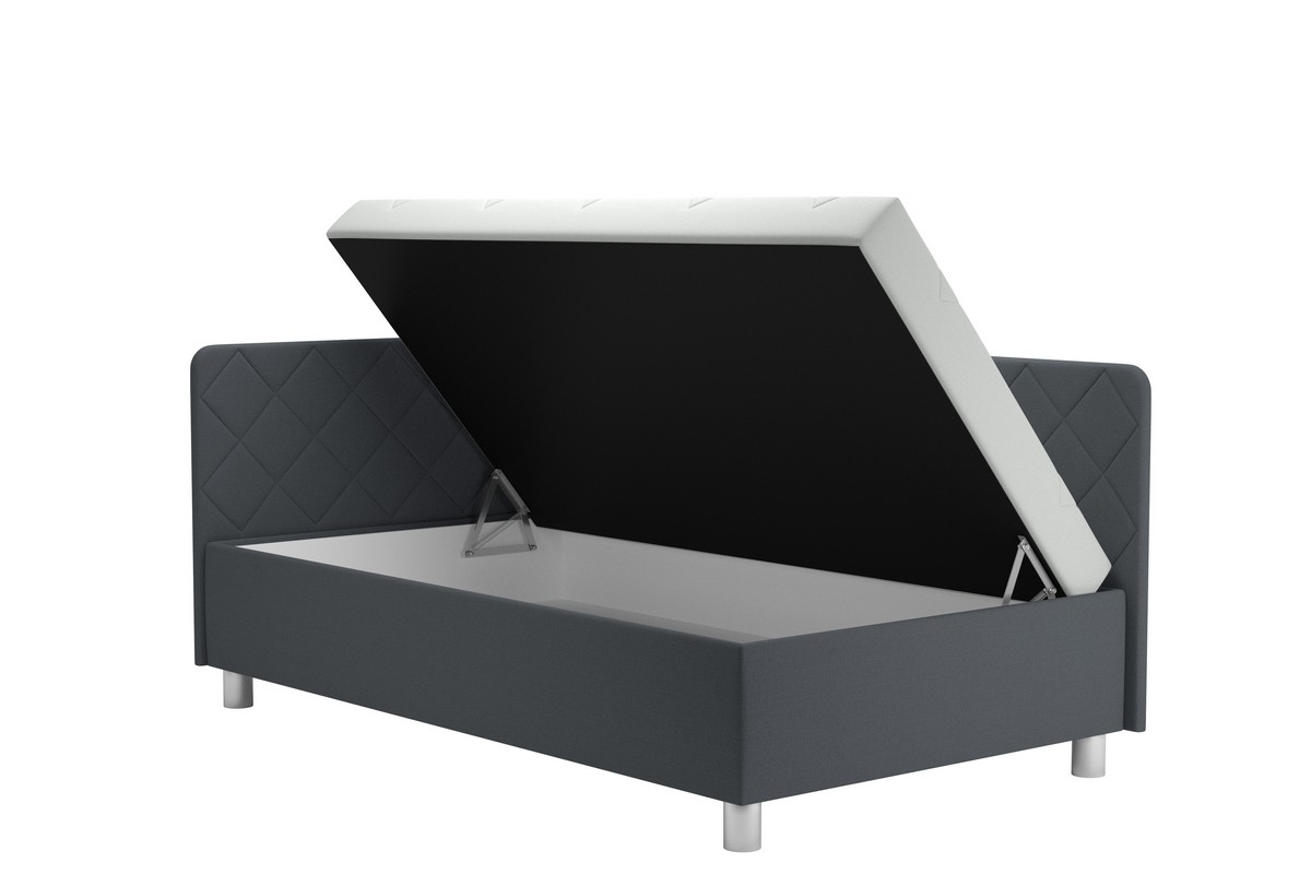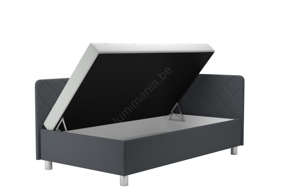Banquette rembourrée avec coffre de rangement et matelas EMILE 110x200 cm gris