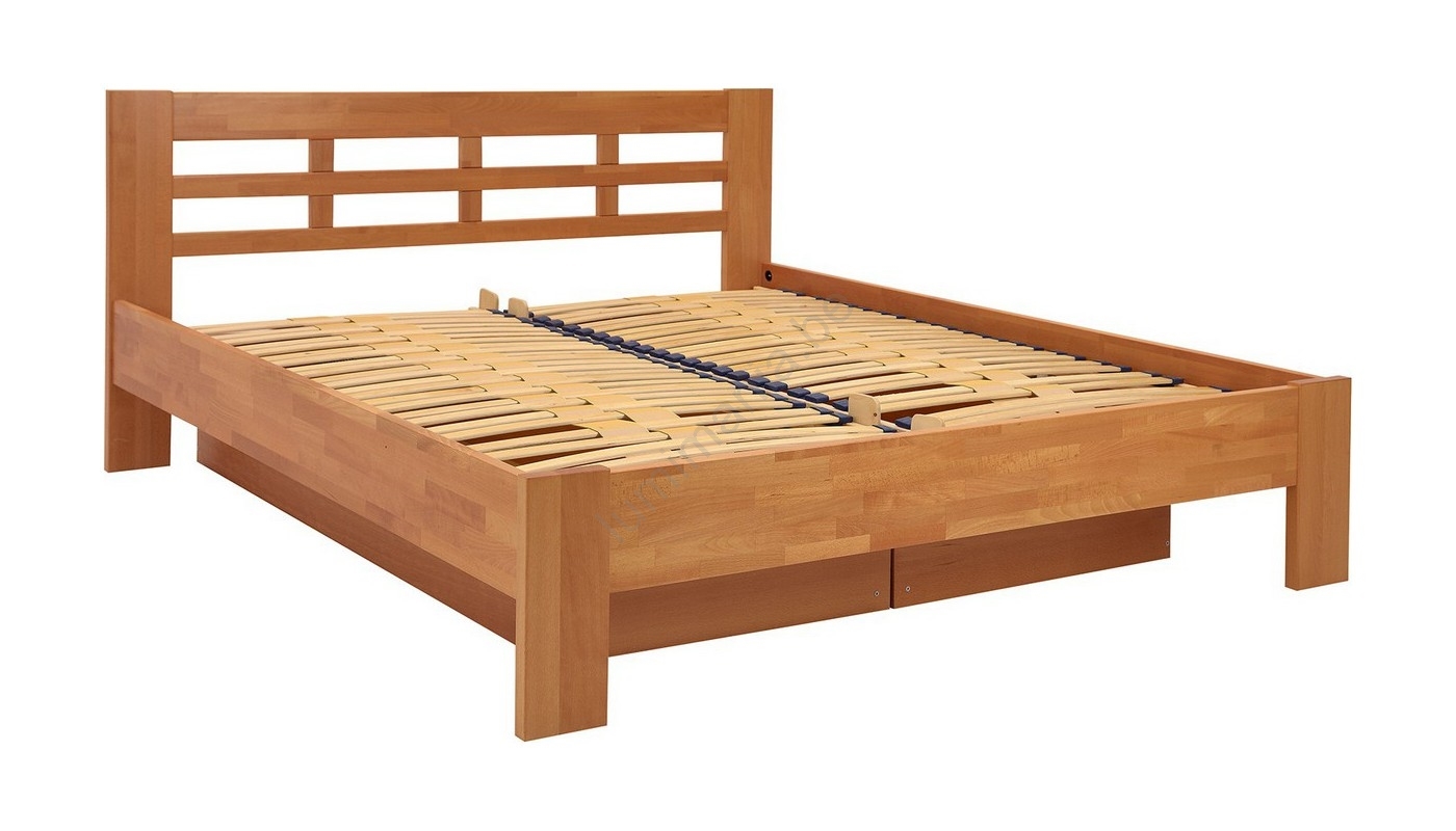 • Lit double en bois massif avec espace de rangement ANGELA 180x200 cm hêtre