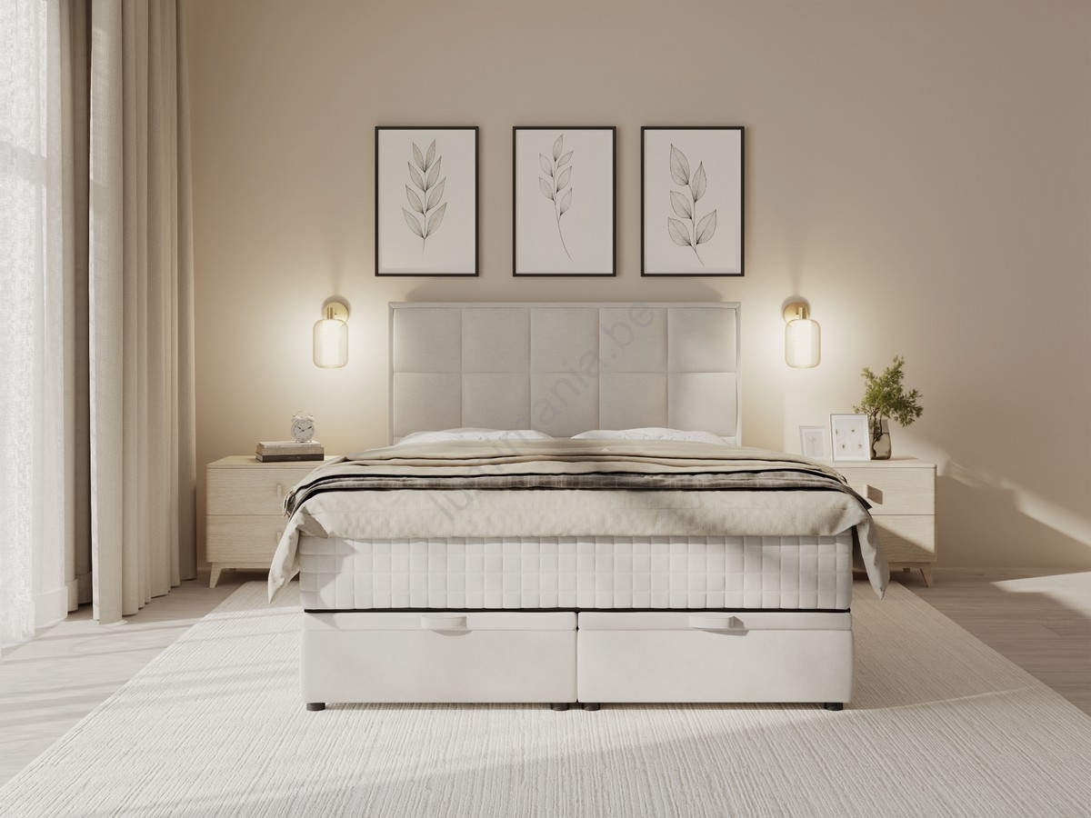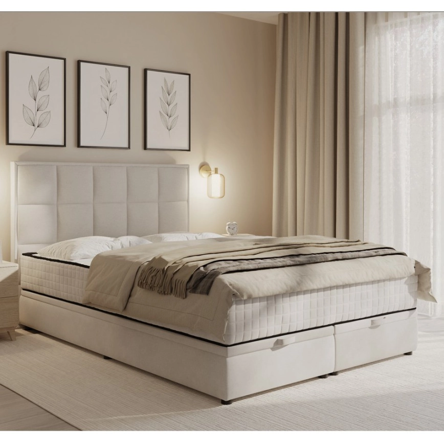 Lit rembourré GRACE 160x200 cm avec matelas et coffre de rangement, beige