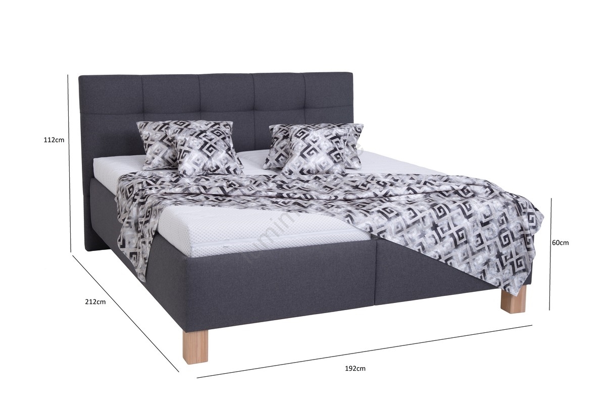 • Lit double rembourré avec des matelas non fixés se distingue par une tête de lit finement travaillée, élégamment matelassée.