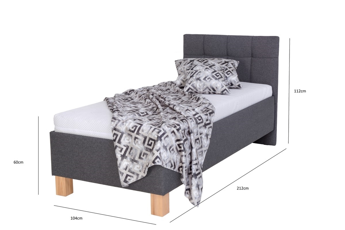 • Lit tapissé MARIA ONE 90x200 cm avec matelas et coffre de rangement, anthracite