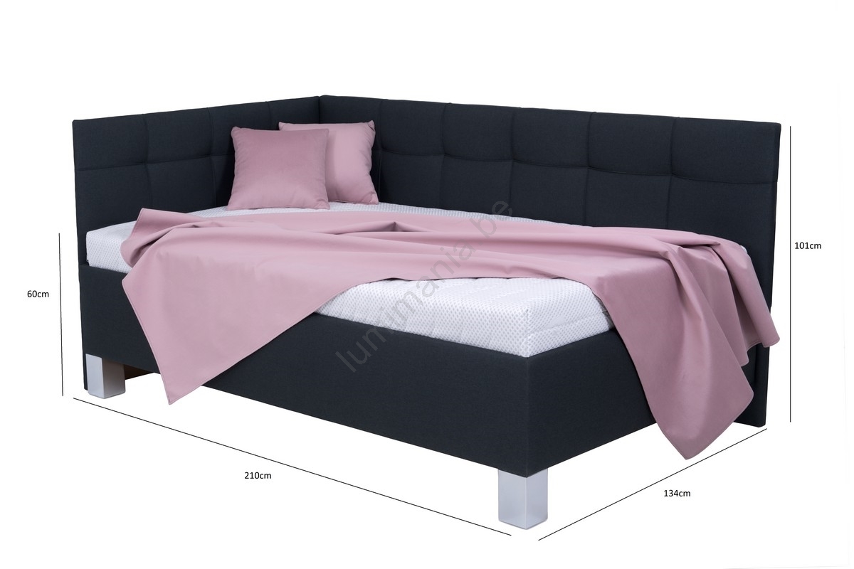 • Lit rembourré avec matelas et coffre de rangement MARIA PETITE 120x200 cm, anthracite