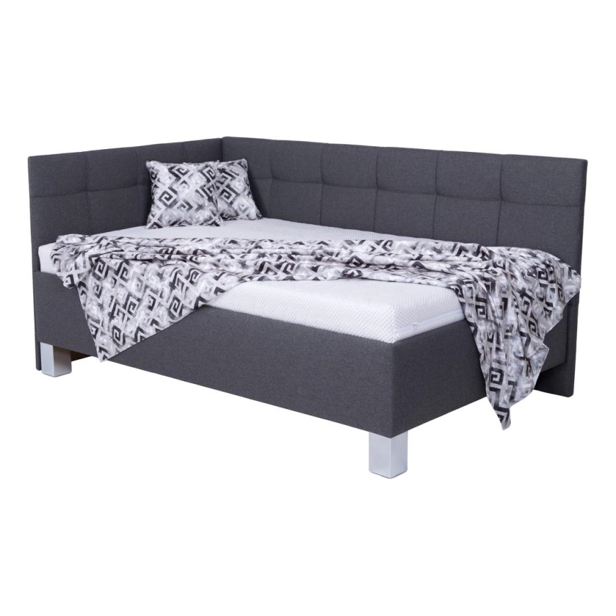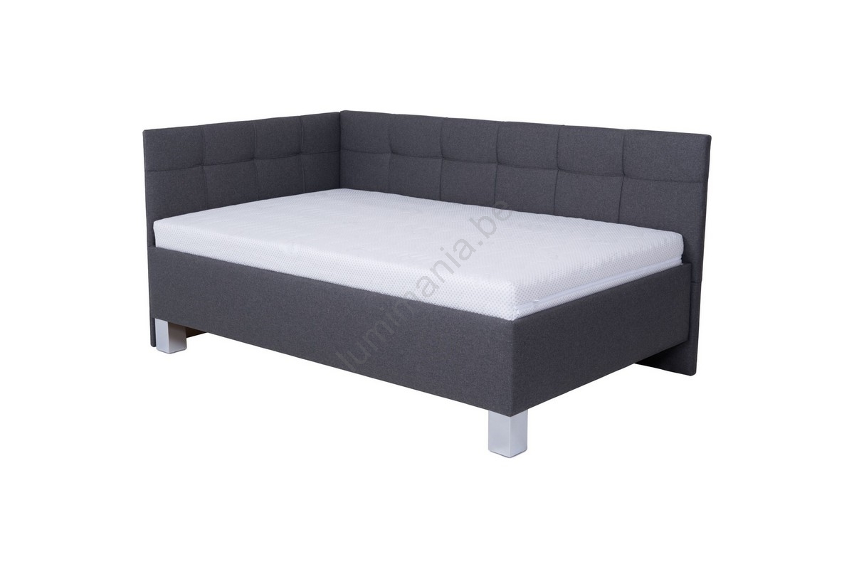 Lit tapissé MARIA PETITE 120 x 200 cm avec matelas et coffre de rangement, gris