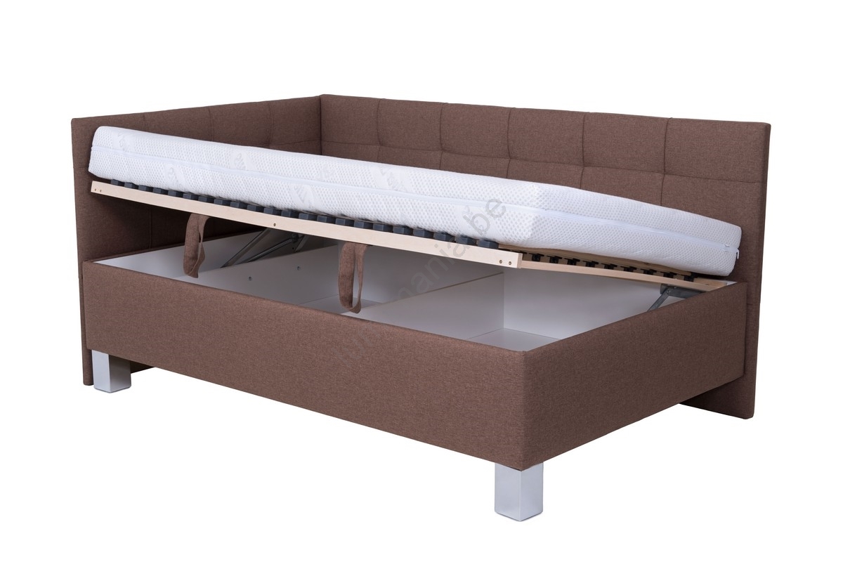 Lit rembourré avec matelas et coffre de rangement MARIA PETITE 120x200 cm marron