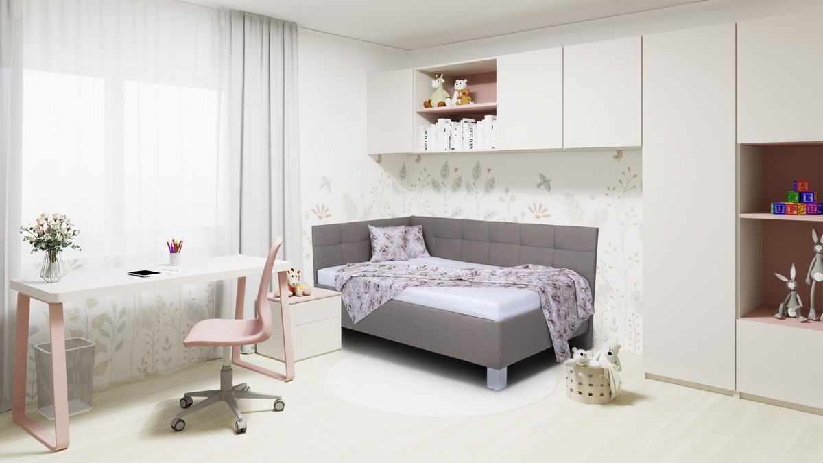 • Lit tapissé MARIA PETITE 120 x 200 cm avec matelas et coffre de rangement, gris