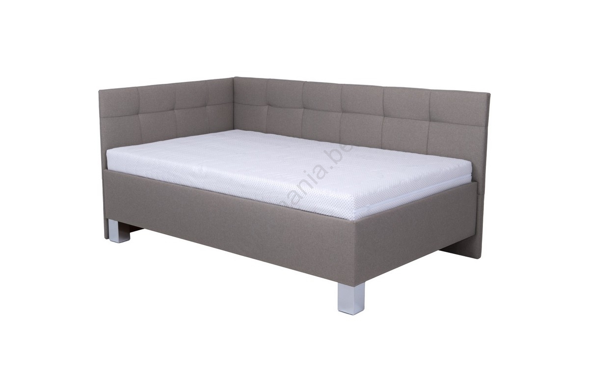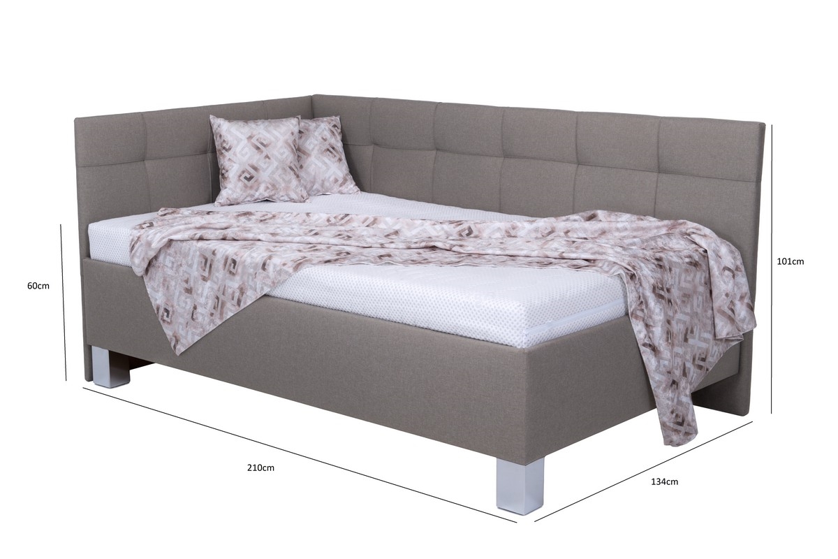 Lit tapissé MARIA PETITE 120 x 200 cm avec matelas et coffre de rangement taupe
