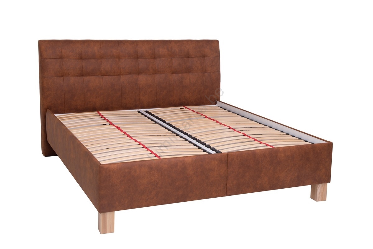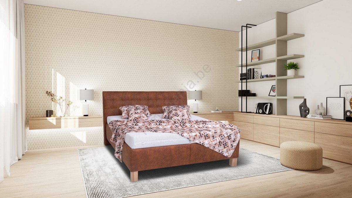 • Lit rembourré VIOLET 180x200 cm avec matelas et espace de rangement, couleur cognac