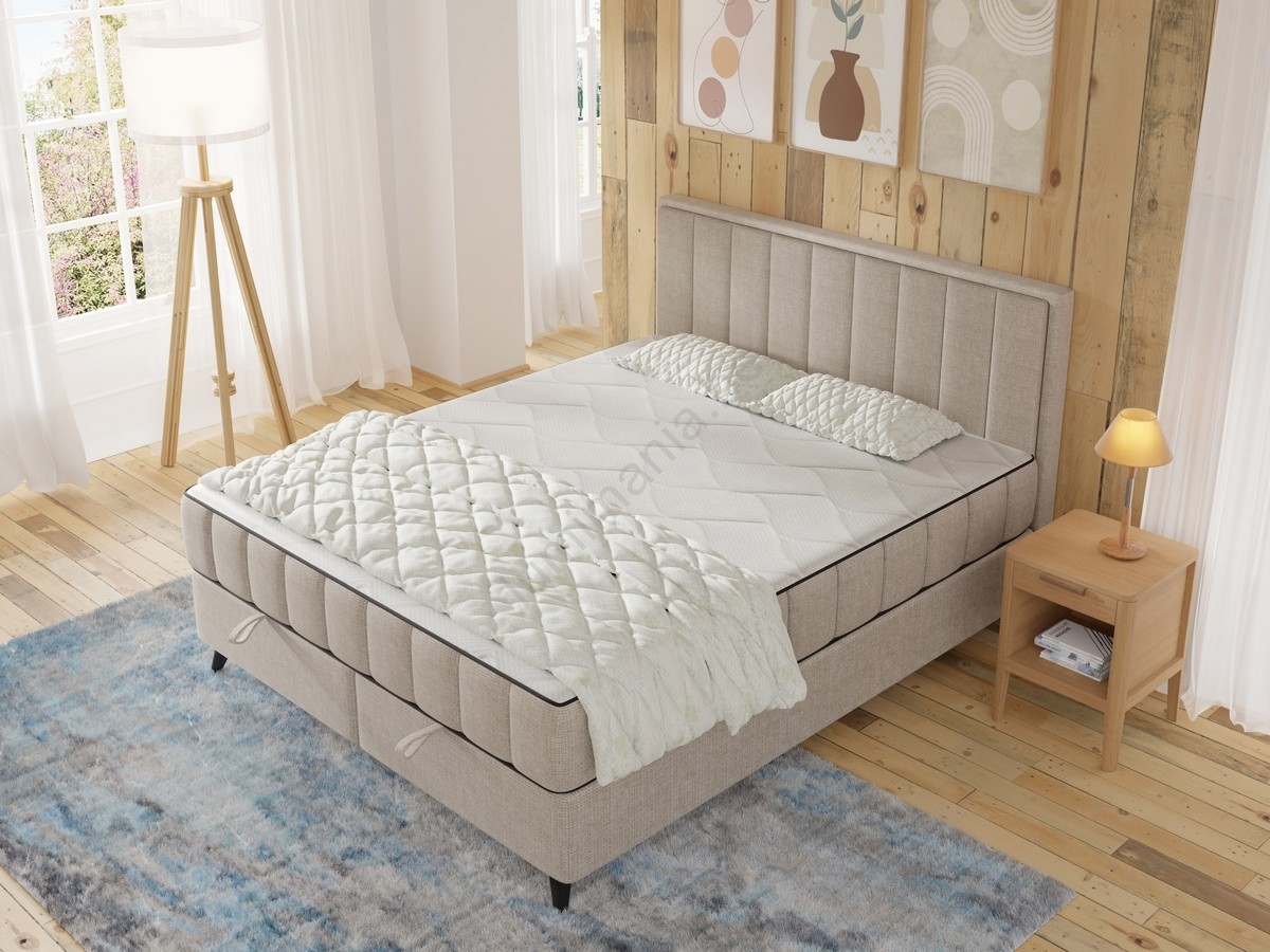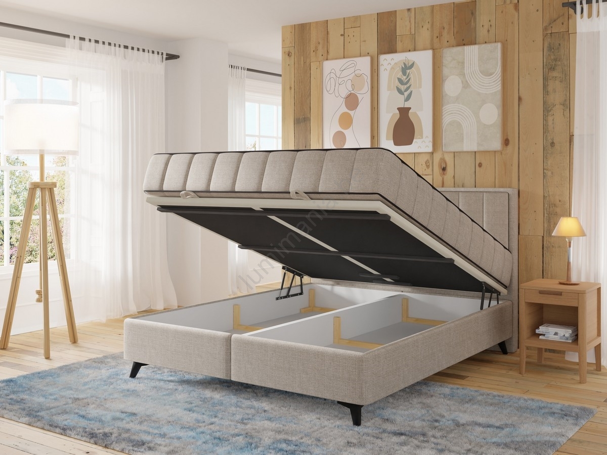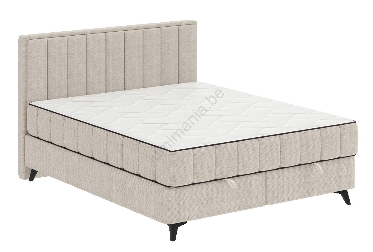 Lit rembourré ALICIA 180x200 cm avec matelas et surmatelas, doté d'un coffre de rangement, beige
