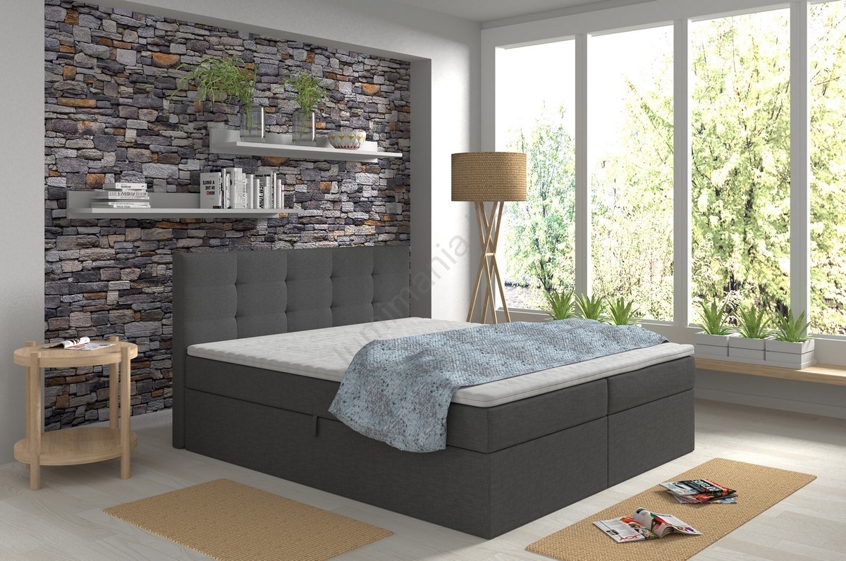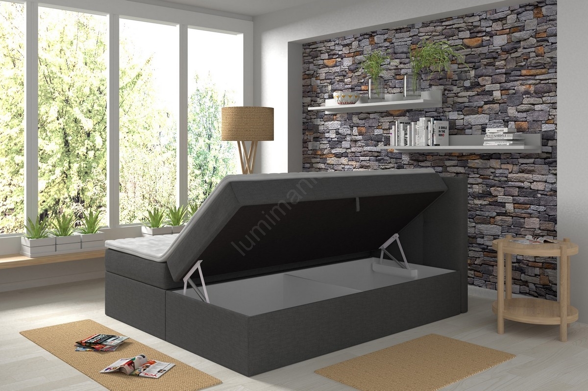 • Lit rembourré EMBER 160 x 200 cm avec matelas et surmatelas et coffre de rangement, anthracite