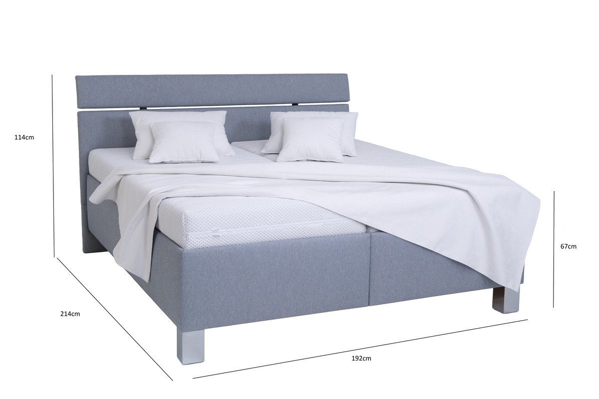 • Lit tapissé ALIS 180x200 cm avec coffre de rangement, sans matelas, gris clair
