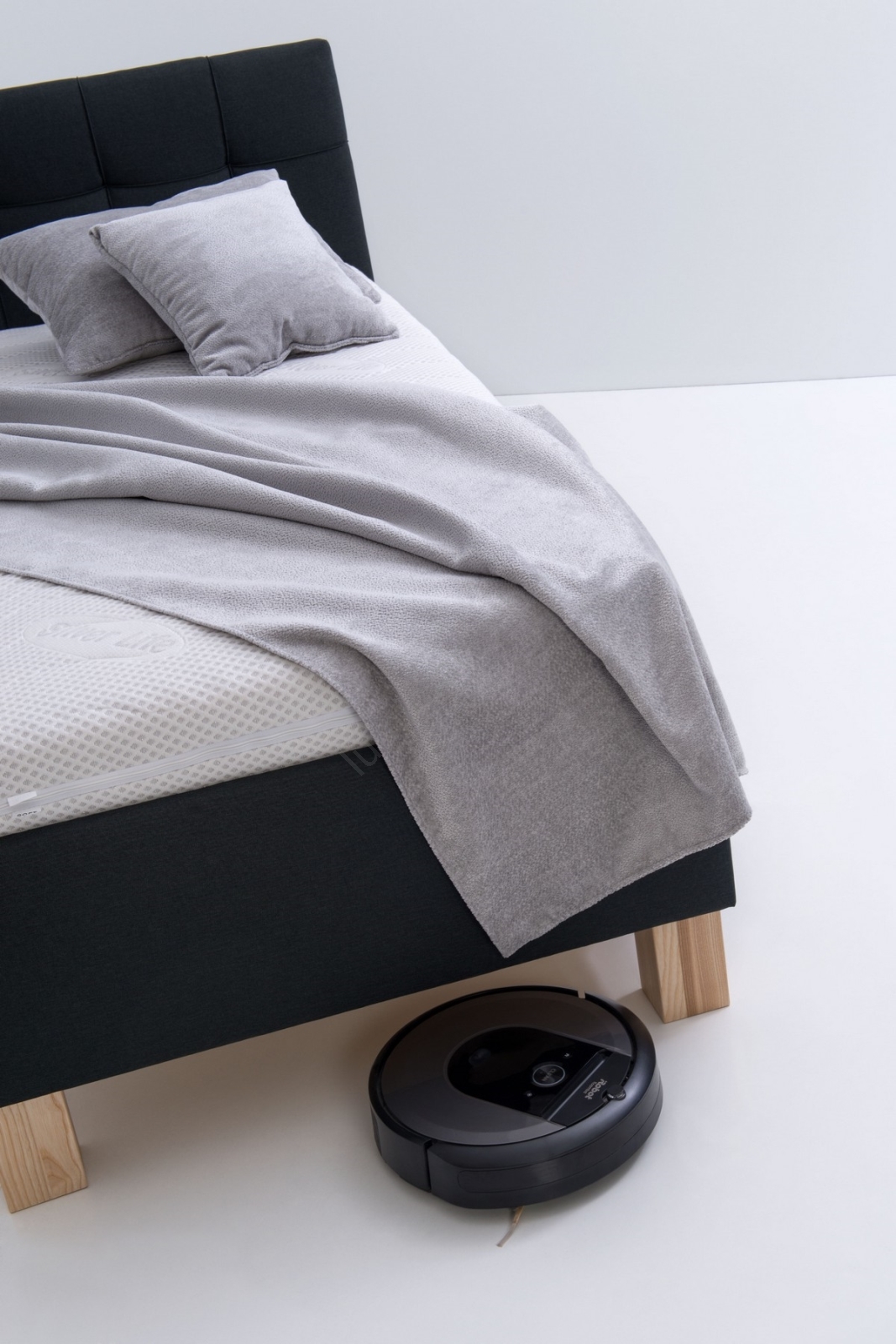 • Lit tapissé avec matelas non fixé se distingue par une tête de lit soigneusement travaillée et élégamment matelassée.