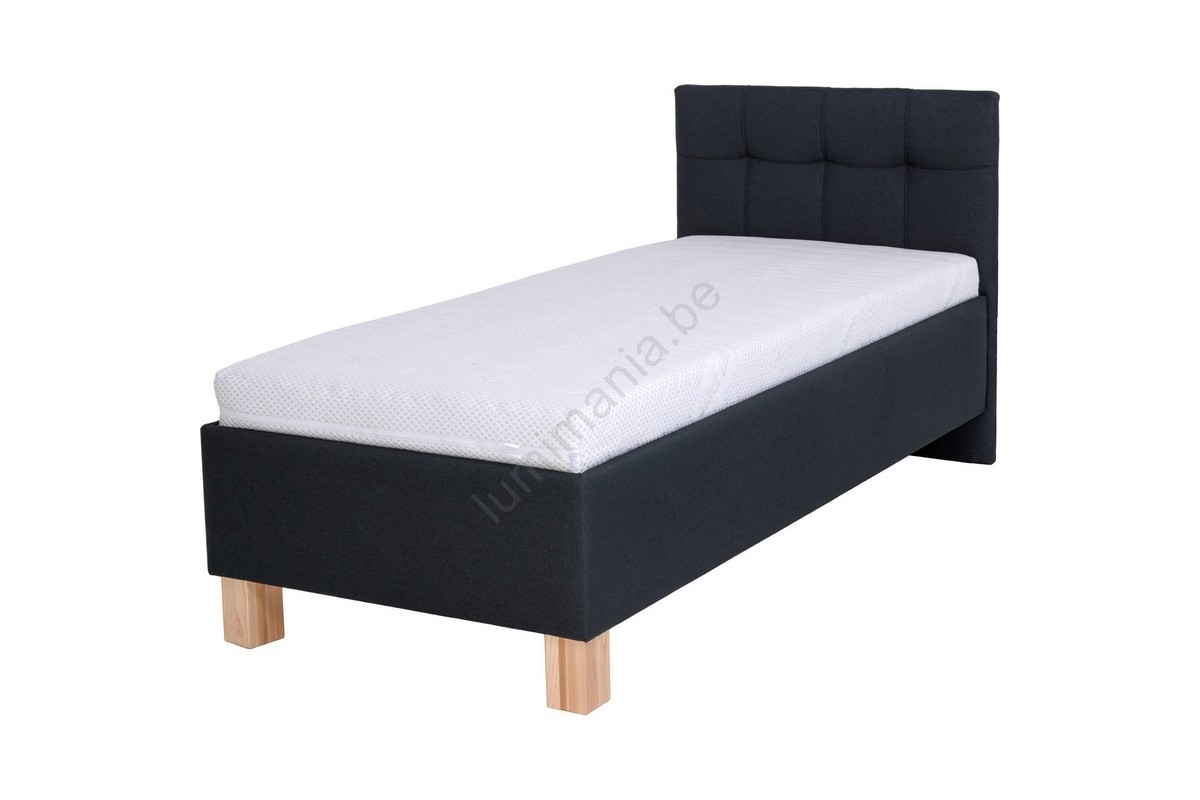 • Lit tapissé MARIA ONE 90x200 cm avec matelas et coffre de rangement, anthracite