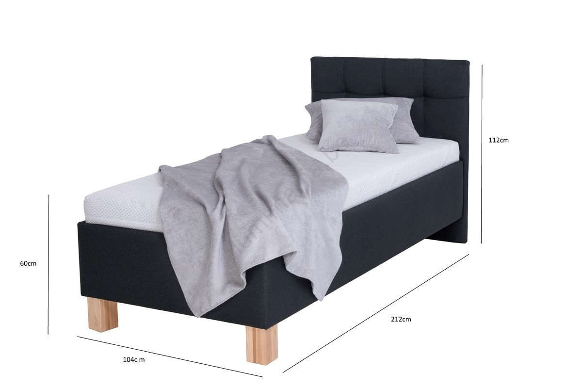 • Lit tapissé avec coffre de rangement MARIA ONE 90x200 cm sans matelas, anthracite