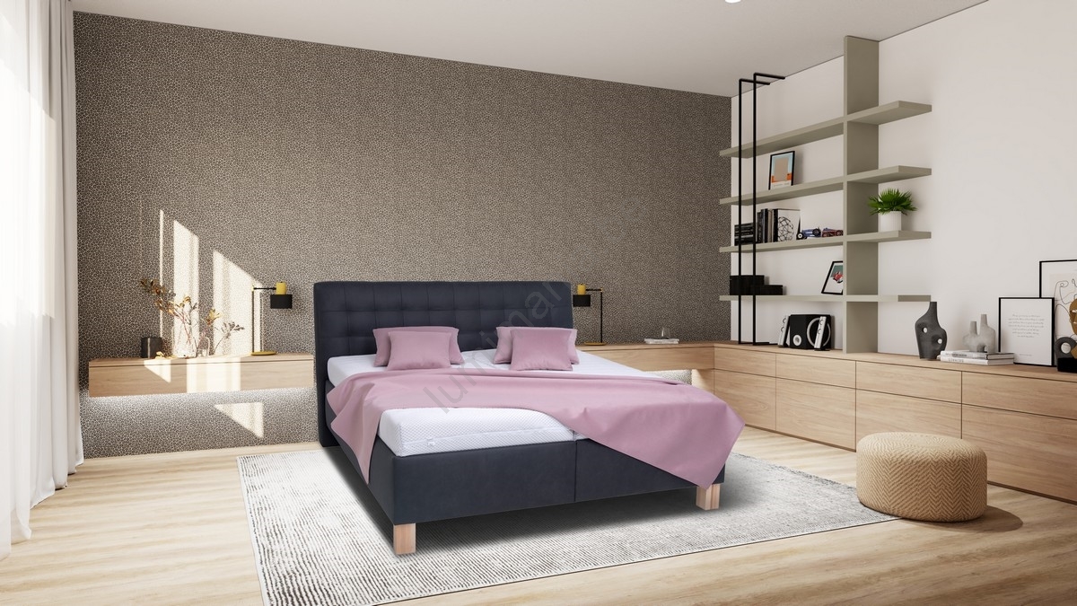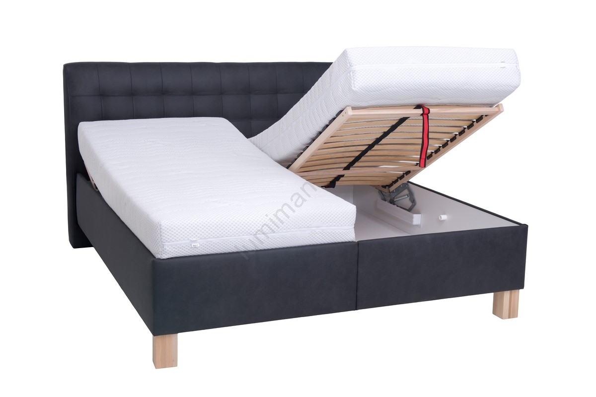 • Lit rembourré VIOLET 180x200 cm avec coffre de rangement intégré, sans matelas, gris foncé
