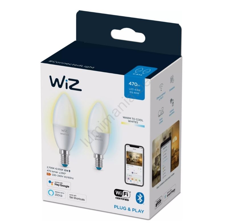 Ampoules, Ampoules, Ampoules à intensité variable, Ampoules connectées, Ampoules LED, Ampoules LED E14, E14, Éclairage connecté, En fonction du culot, Luminaires, Marques, WiZ, WiZ