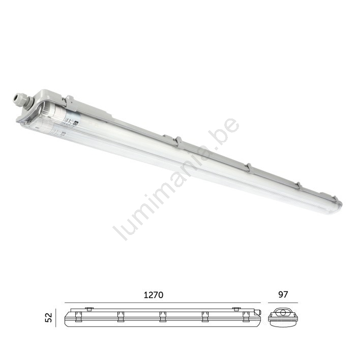 Luminaire LED technique pour tubes T8, 2x G13, 18 W, 230 V, 5000 K, IP65, 127 cm