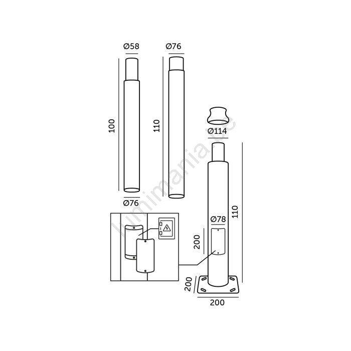 • Diamètre de la tige : 5,8 cm.