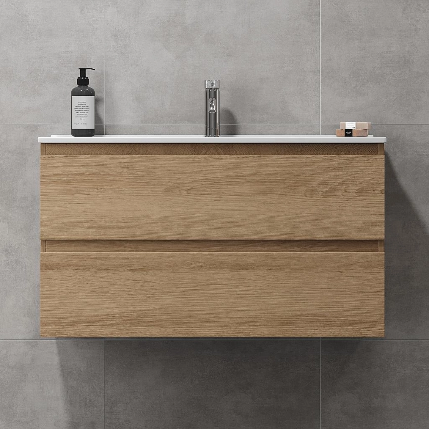 Meuble de salle de bains avec lavabo KENWOOD 91 cm, finition chêne