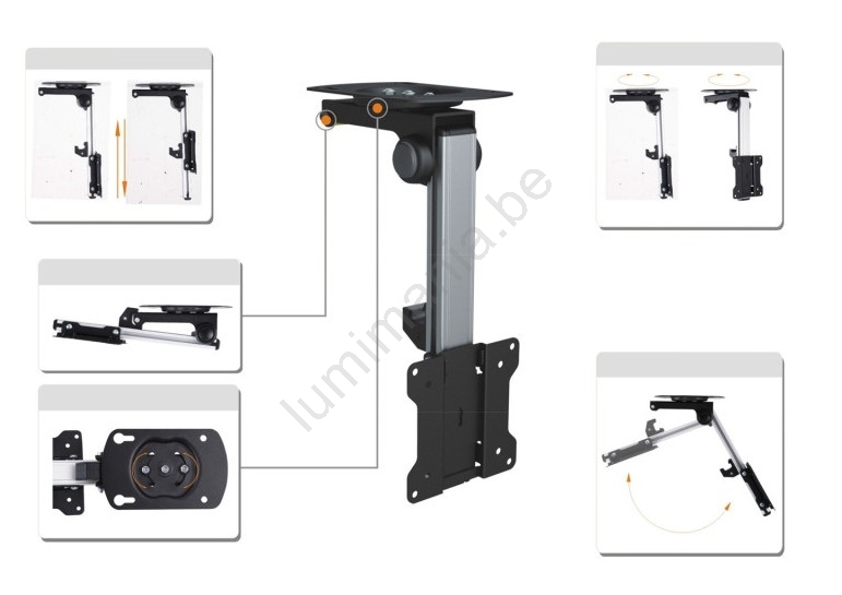 • Support TV basculant conçu pour la fixation au plafond, y compris les plafonds inclinés des pièces mansardées.