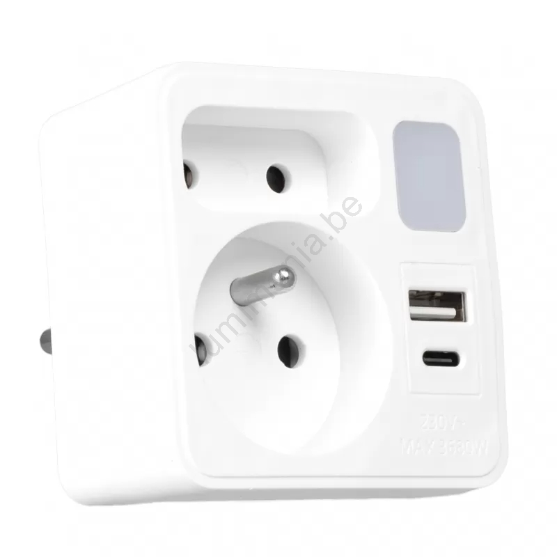 Bloc multiprise 2 prises + USB-C + USB-A avec éclairage LED 0,5W/230V 3000K