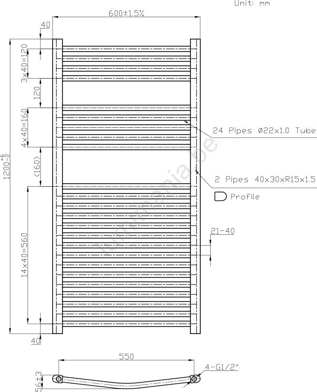 Novaservis - Radiateur sèche-serviettes arrondi pour salle de bains 644W/230V 120x60 cm blanc