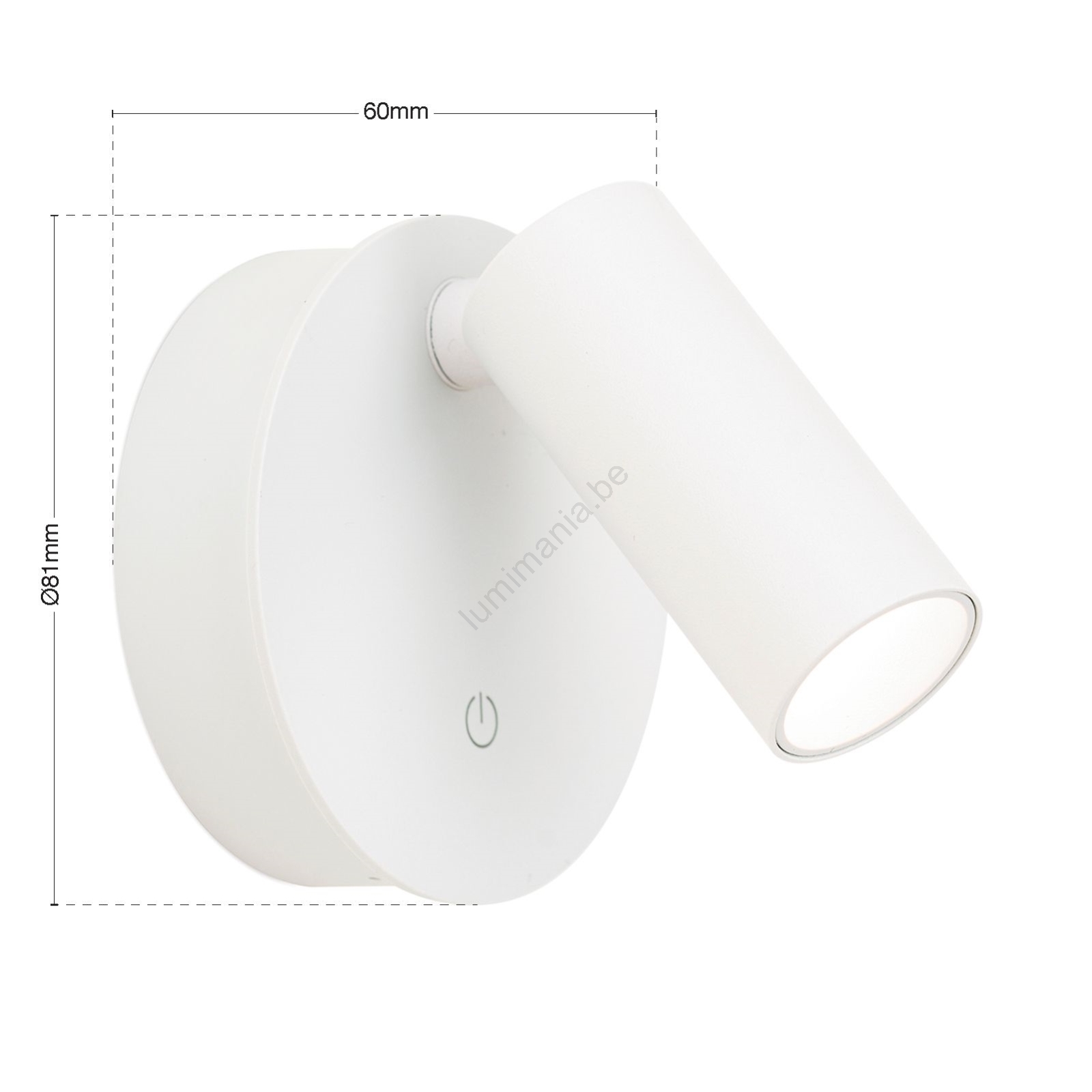 • Spot mural tactile LED dimmable rechargeable LUXY LED/1W/5V 2200 mAh 2700/3000/4000K blanc