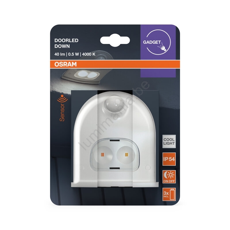 • Osram - Applique murale extérieure LED DOORLED avec détecteur, LED 0,5 W, 3x AA, IP54, argentée