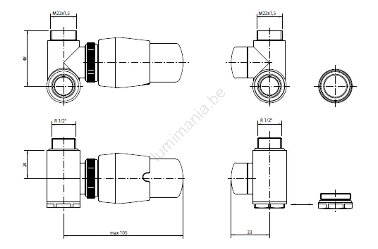 P.M.H. INTER-RC - Vanne thermostatique INTER droite/chrome brillant