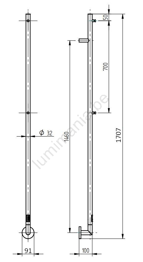 P.M.H. OL1SS - Sèche-serviettes électrique OLE 24W/230V 170 cm IP44 inox poli