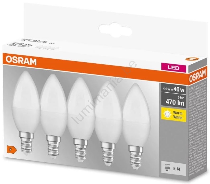 LOT 5x ampoule LED BASE B40 E14/4,9W/230V 2700K - Osram Son design de qualité supérieure assurera un éclairage parfait de votre intérieur. La catégorie E14 est dédiée aux ampoules ayant le même culot. Dans notre boutique en ligne, vous avez le choix entre des ampoules à filament traditionnel et des ampoules LED modernes, plus économes en énergie et d'une durée de vie plus longue.