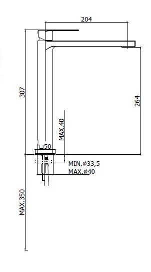 • Le bec allongé facilite l'utilisation avec des lavabos plus hauts et de plus grande taille.