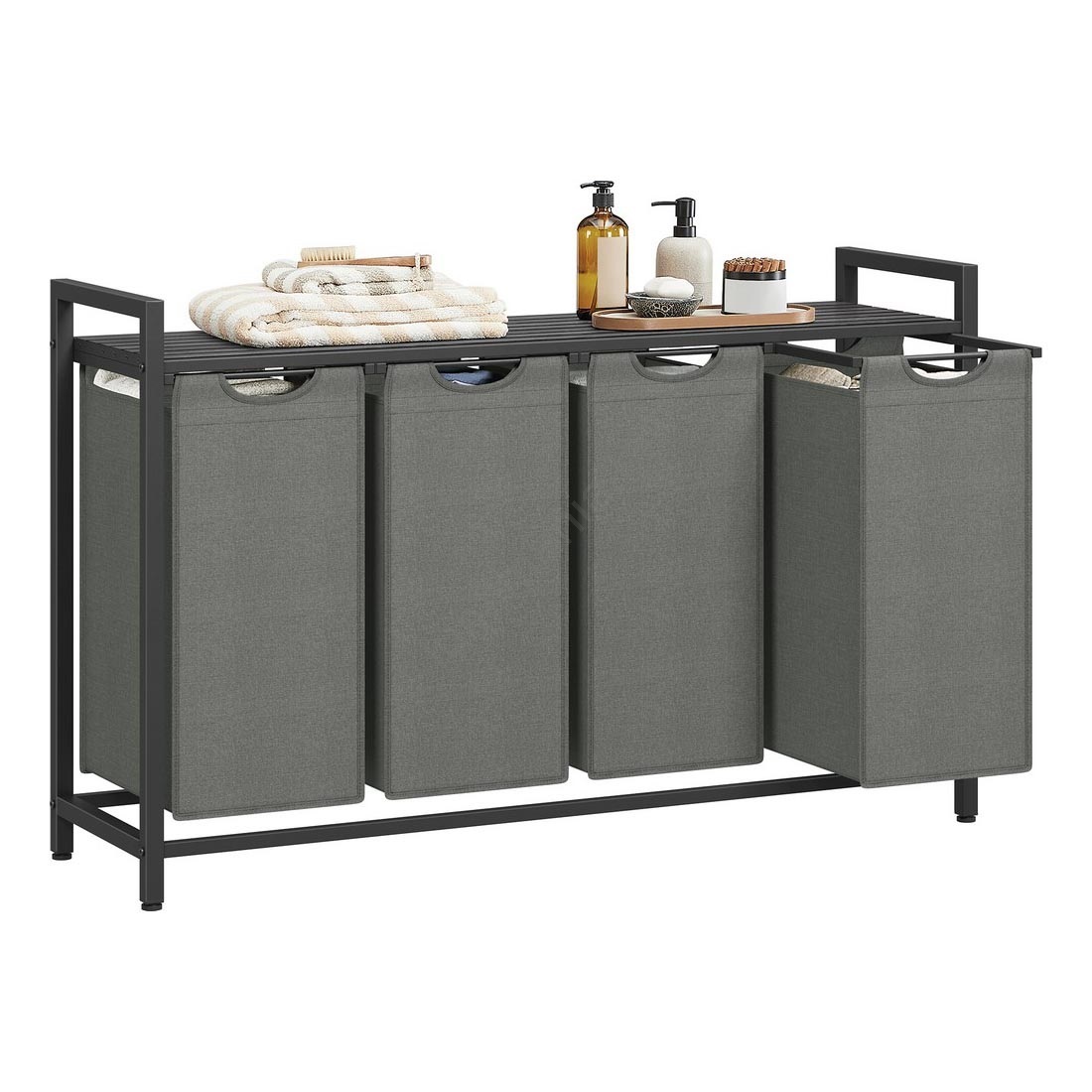 • 4 sacs, 1 étagère – Triez votre linge dans quatre sacs en tissu (40 L par sac) et rangez détergents, adoucissant et autres produits sur l'étagère.