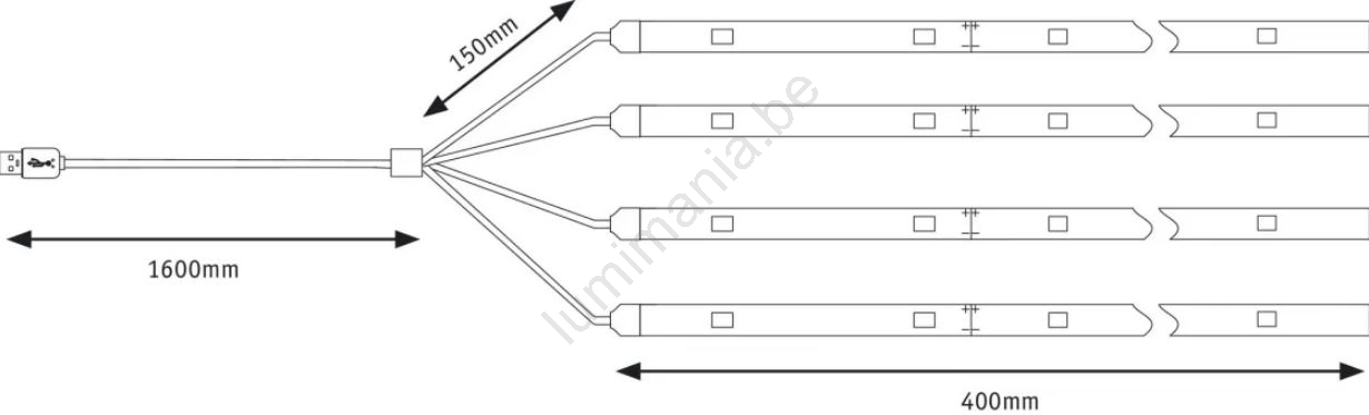 • L'alimentation se fait par câble USB, adaptateur de prise non inclus.
