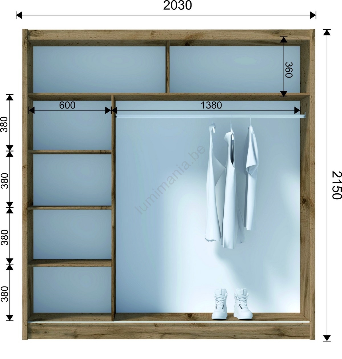 • Armoire avec miroir SABRINA 203x215 cm chêne wotan