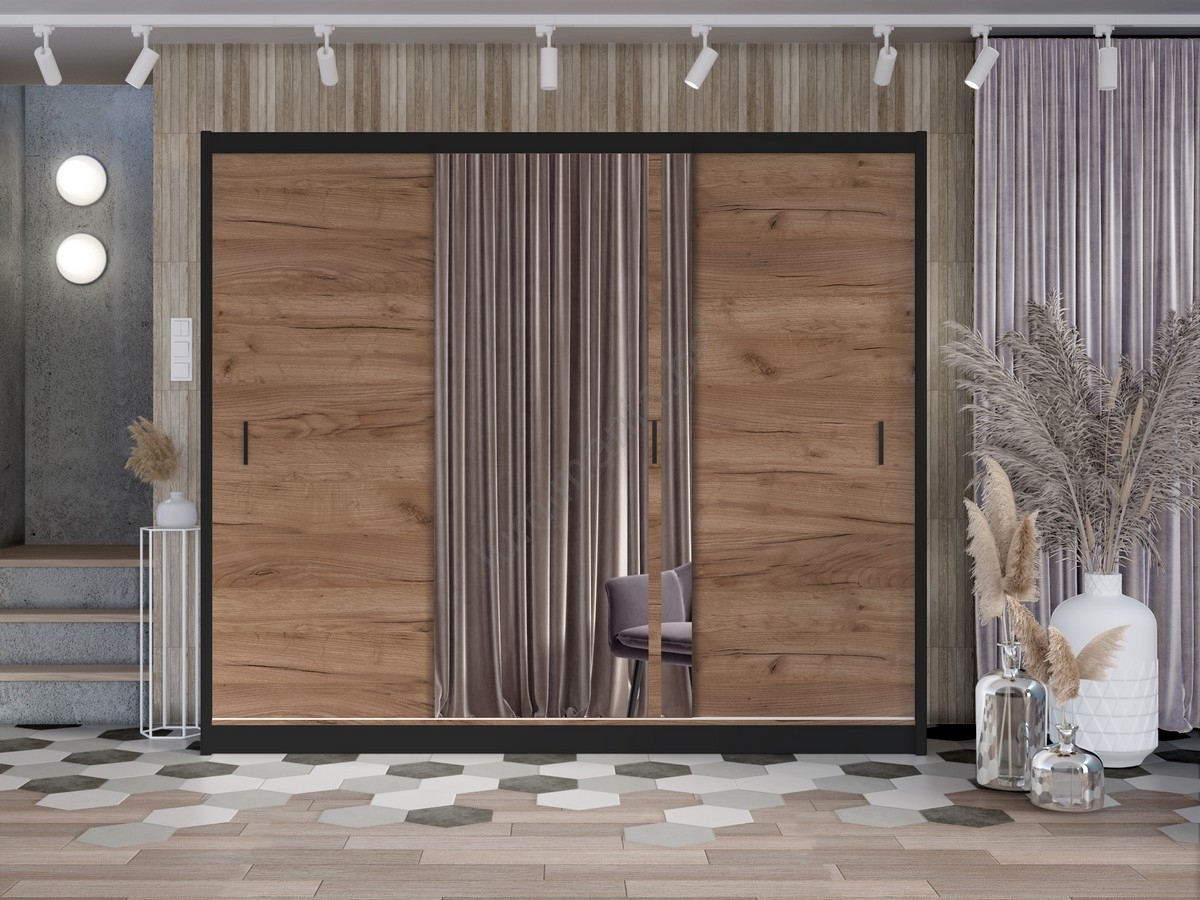 • Armoire avec miroir MIRO 250x215 cm chêne craft/noir
