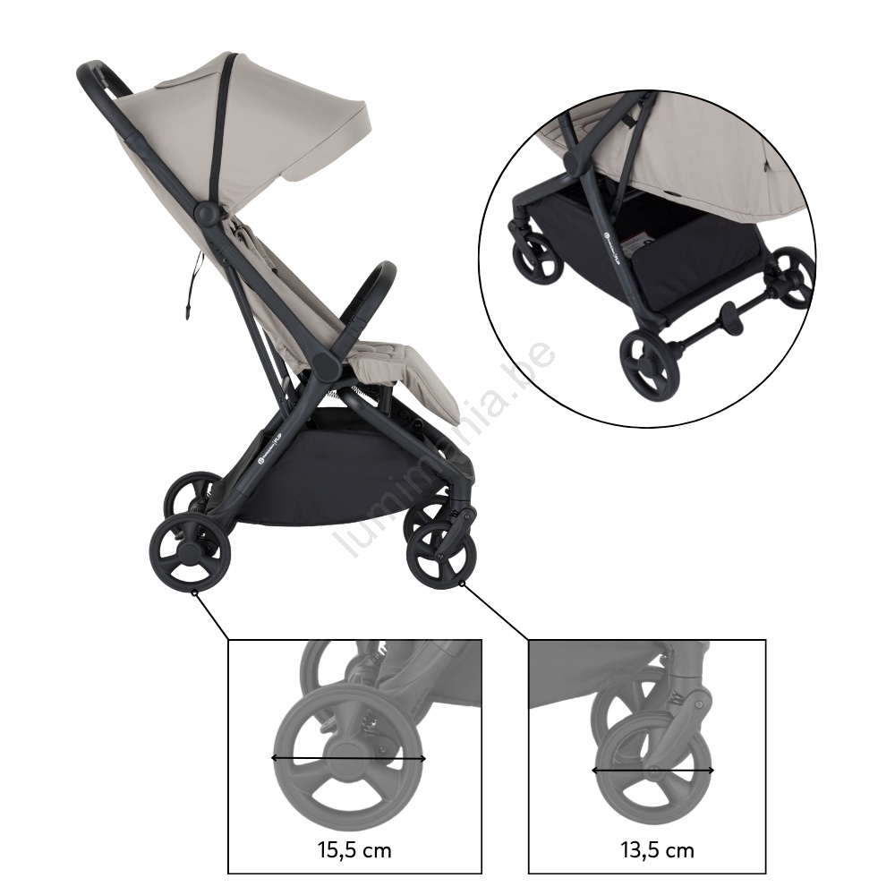 • Poussette moderne qui allie dimensions compactes, grande légèreté et fonctions pratiques.
